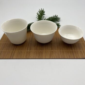 Dieser Gaiwan eignet sich wunderbar für eine ruhige Teezeremonie, zu zweit oder allein. Durch das Material, eine Art Keramik, und die matte Glasur, entstehen bei der Verwendung nur satte Geräusche, etwa wenn der Deckel aufgelegt wird. Der Gaiwan liegt angenehm weich in der Hand und besticht mit seiner vollendeten Form und Schlichtheit.